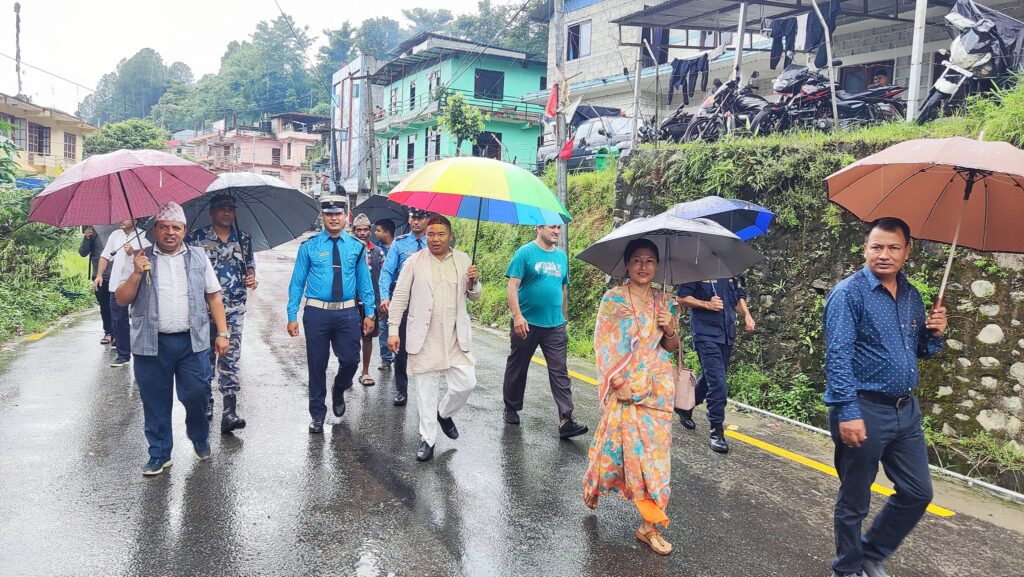 भदौ १५ — गैरकानुनी रुपमा बनेका संरचना हटाउन तथा बजार सरसफाइ गर्न निर्देशन दिँदै मेलम्ची नगरपालिकाले बजार अनुगमन गरेको छ । घर अगाडि बनाइएका भञ्याङ, व्यापारिक प्रयोजनका लागि हालिएका पालि तथा अन्य संरचना हटाउन निर्देशन दिइएको नगर प्रमुख आइतमान तामाङले जानकारी दिनुभयो ।