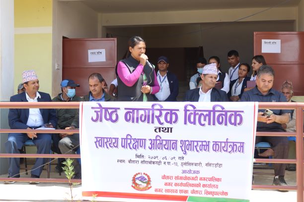 दिपक खत्री ÷ असोज ९ — चौतारा साँगाचोकगढी नगरपालिकाले ज्येष्ठ नागरिक स्वास्थ्य परीक्षण कार्यक्रमको सुभारम्भ गरेको छ । नगरको वडा नम्बर १३ नर्सिङडाडामा एक कार्यक्रम बिच मेयर कृष्ण प्रसाद सापकोटाले स्वास्थ्य सामाग्री हस्तान्तरण गर्दै कार्यक्रमको सुभारम्भ गर्नुभएको हो ।