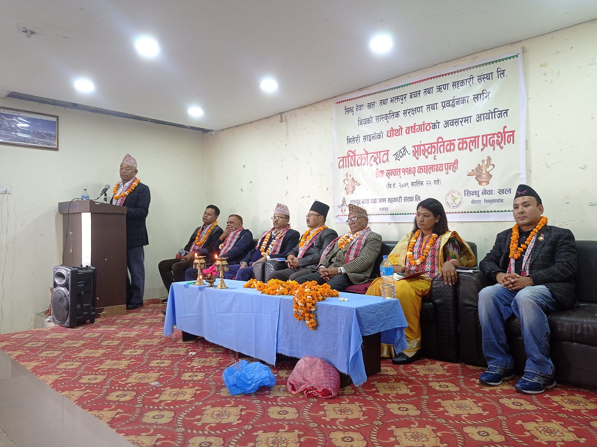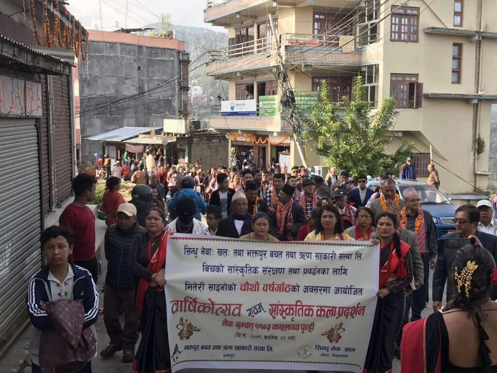 कार्तिक २२ — सिन्धु नेवा खल तथा भक्तपुर बचत तथा ऋण सहकारी संस्था लिमिटेड बिचको साँस्कृतिक संरक्षण तथा प्रवर्धनका लागि मितेरी साइनोको चौथो वर्षगाँठको अवसरमा चौतारामा विशेष कार्यक्रम गरीएको छ । वार्षिक उत्सव एवंम साँस्कृतिक कला प्रदर्शन कार्यक्रमलाई सम्बोधन गर्दै चौतारा साँगाचोकगढी नपाकी उपमेयर सिता थापाले नेवार समुदायको सँस्कृति संरक्षणका लागि स्थानिय सरकार सधै लागि पर्ने प्रतिवद्धता जनाउनुभयो । मितेरी साइनोको प्रशंसा गर्दै थापाले शुभ कामना दिनुभयो ।