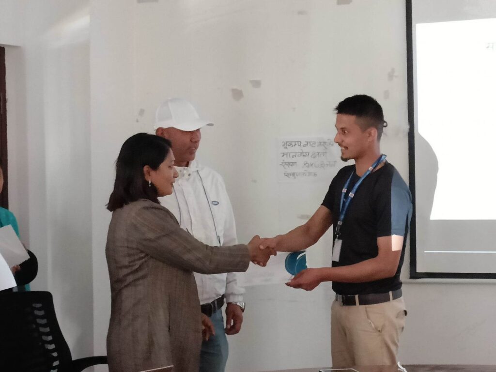 मनिला महर्जनले सञ्चालन गरेको कार्यक्रममा उपप्रमुख थापाले विद्यार्थीहरुलाई प्रमाणपत्र वितरण गरेकी थिइन् ।