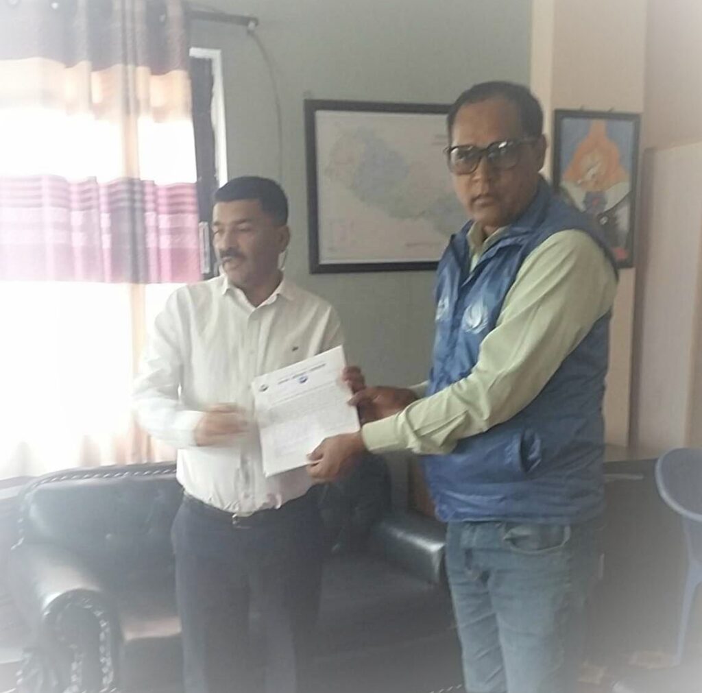 बिहिबार मानव अधिकार एलाइन्सका जिल्ला अध्यक्ष नातिबावु धितालले प्रमुख जिल्ला अधिकारी रमेश न्यौपानेलाई बुझाउँनुभएको हो । उत ज्ञापन पत्र बुझ्दै आजै सम्बन्धित निकायमा पठाउने प्रमुख जिल्ला अधिकारी रमेश न्यौपानेले बताउनु भएको छ ।