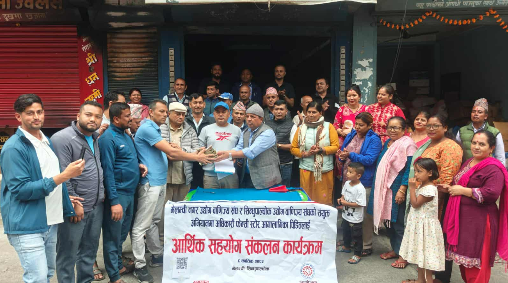 मेलम्ची — मेलम्चीमा गत कात्तिक ५ गते भएको भीषण आगलागीबाट पूर्णरूपमा क्षति पुगेका अधिकारी फेन्सी स्टोर र धनलक्ष्मी ज्वेलर्सका पीडित व्यवसायीहरूलाई मेलम्ची नगर उद्योग वाणिज्य संघको पहलमा संकलित सहयोग रकम हस्तान्तरण गरिएको छ ।