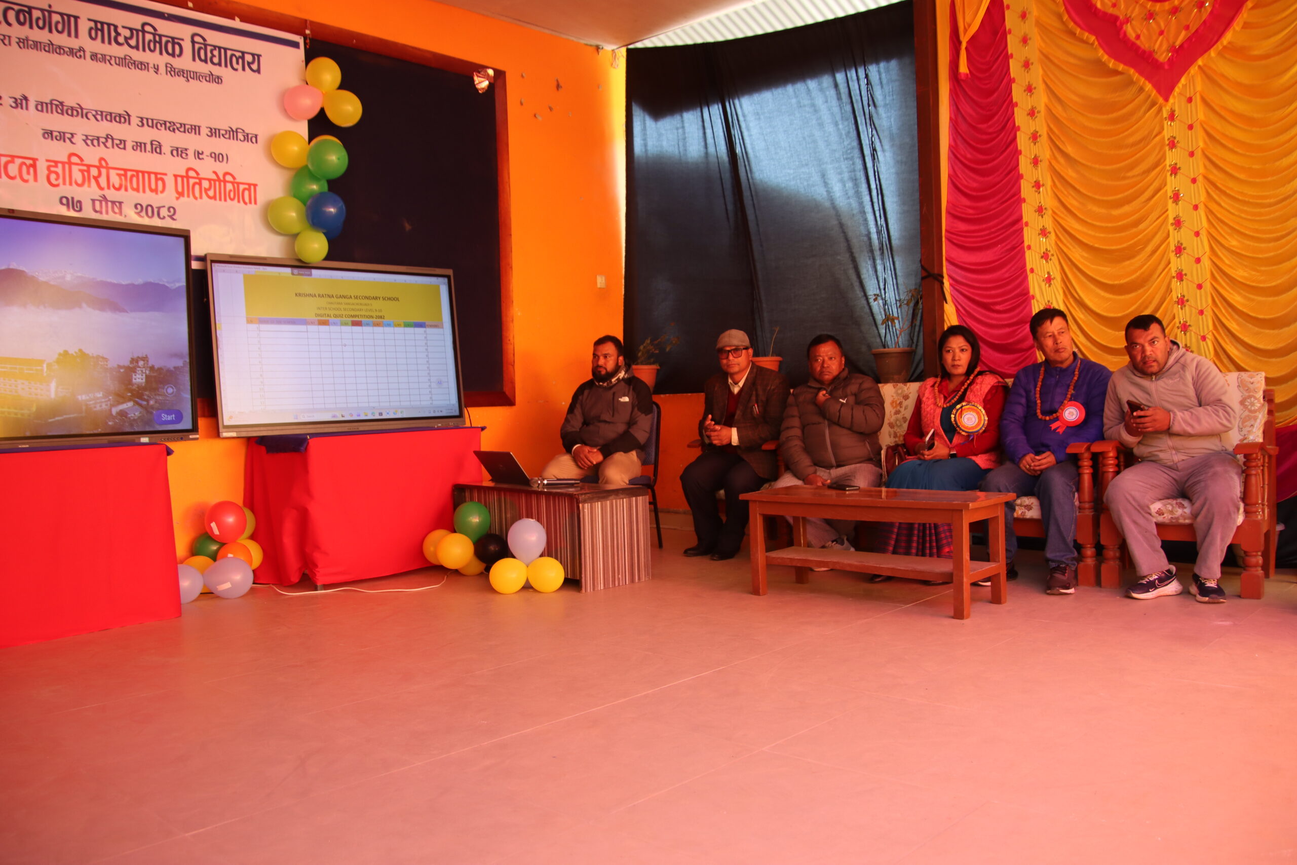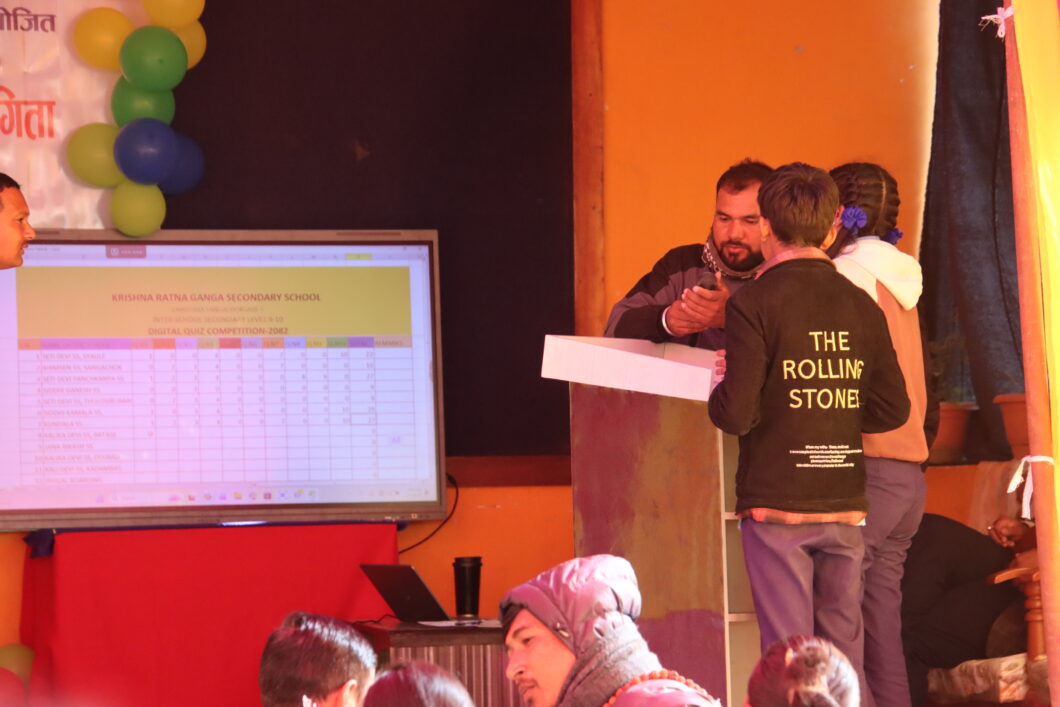 चोैतारा | सिन्धुपाल्चोकको चौतारा साँगाचोकगढी–५ स्थित श्री कृष्ण रत्नगंगा माध्यमिक विद्यालयको प्राङ्गण पुस १७ गते बिहीबार केही फरक दृश्य देखियो । ७९औँ वार्षिकोत्सवको अवसरमा आयोजित नगरस्तरीय डिजिटल हाजिरीजवाफ प्रतियोगितामा विद्यार्थीहरू आत्मविश्वासका साथ स्क्रिनतर्फ केन्द्रित थिए ।