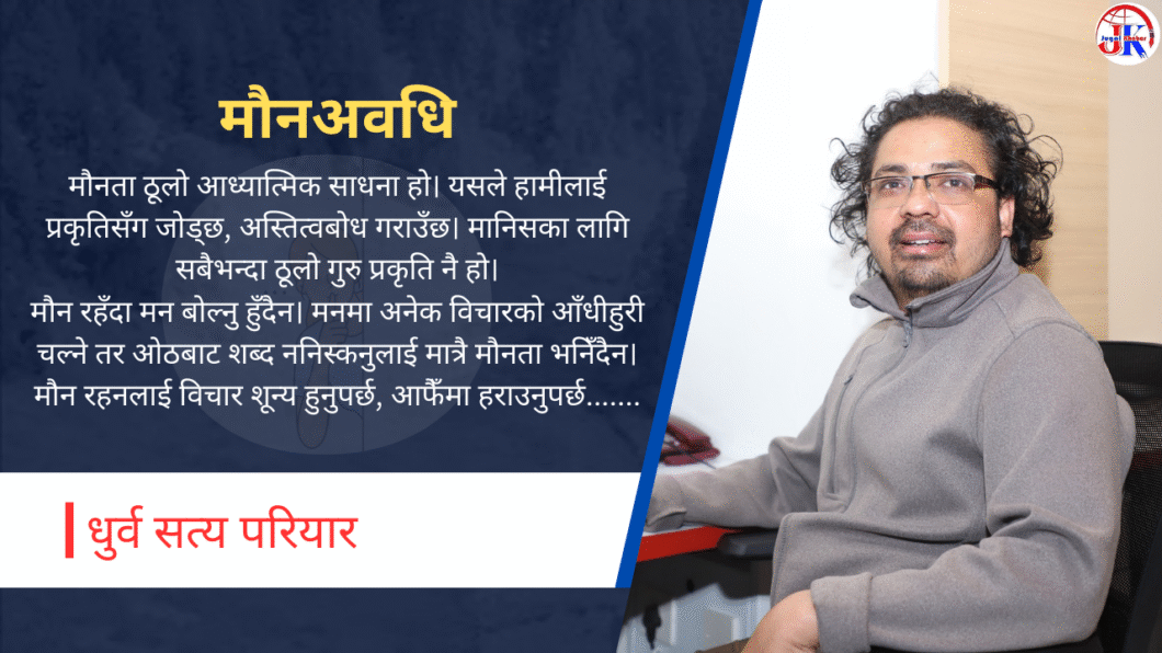 मौनता ठूलो आध्यात्मिक साधना हो। यसले हामीलाई प्रकृतिसँग जोड्छ, अस्तित्वबोध गराउँछ। मानिसका लागि सबैभन्दा ठूलो गुरु प्रकृति नै हो।