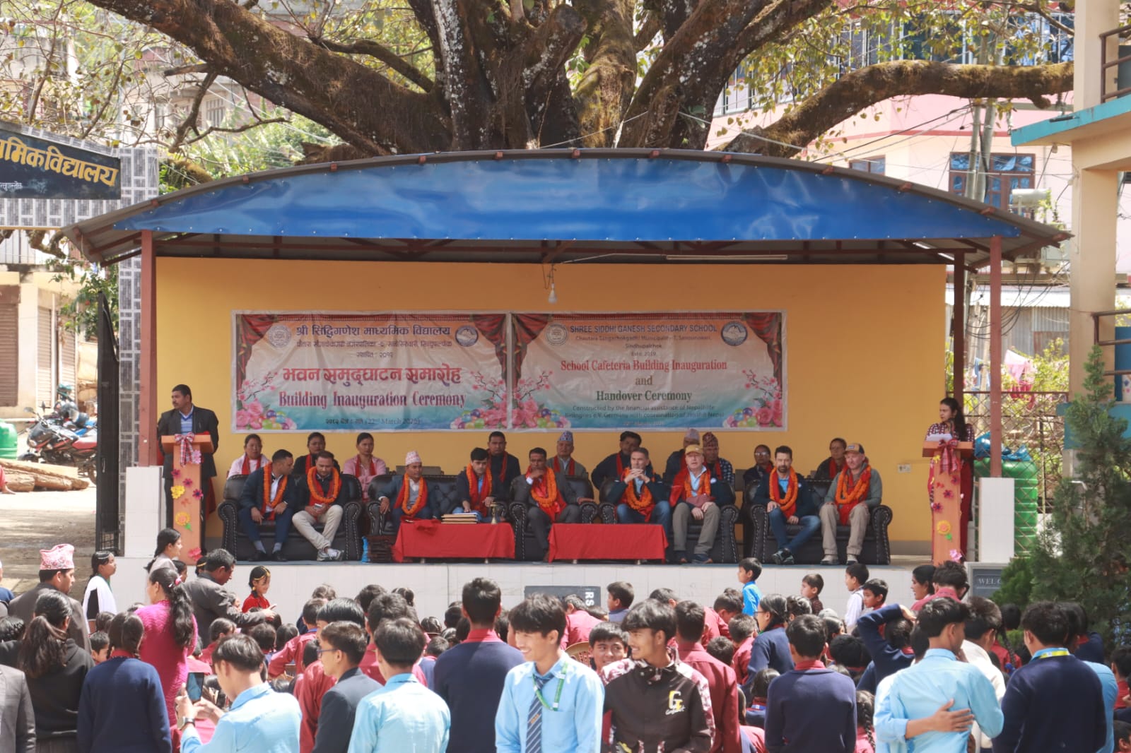 सिन्धुपाल्चोकको सानोसिरुवारीस्थित श्री सिद्धीगणेश माध्यमिक विद्यालयमा नयाँ भवन निर्माणसँगै खुशीको माहोल छाएको छ। विद्यालयका विद्यार्थी, शिक्षक तथा स्थानीयबासीहरूले विद्यालयको भौतिक पूर्वाधार सुदृढ बनाउन सहयोग पुर्याउने जर्मन संस्था ‘नेपाल हिल्फे वाइलग्रिस’को टोलीलाई फूलमालासहित आत्मीय स्वागत गरेका छन्।