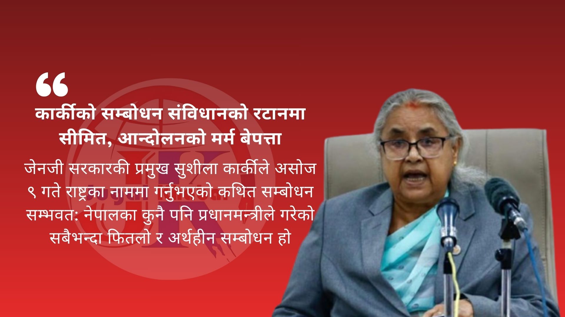 कार्कीको सम्बोधन संविधानको रटानमा सीमित, आन्दोलनको मर्म बेपत्ता